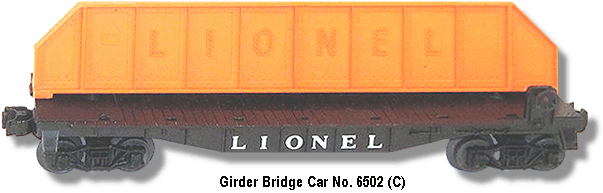 Variation B: RED chassis that uses mold 6511-2. Found both with and without the "LIONEL" heat-stamped inscription on the car sides. Also, found both with and without a brake wheel. Arch-Bar trucks define the difference between this car and No. 6409-25.