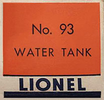 The Water Tower No. 93 looks like another pre-war carry-over, but it’s not. Produced between 1946 and 1950, it was of all sheet metal construction with a BLACK spout, ALUMINUM finished tower and a a RED painted base. The decal on the tower is difficult to find in good condition. There are no known variations of this piece. Dimensions: 8-3/8 inches high.